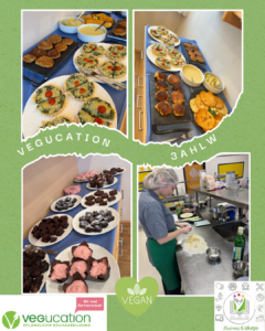 Tag 1: Verkostung und Bewertung verschiedener veganer Lebensmittel. Anschließend wurden grundlegende Nahrungsmittel ausprobiert und erste Basics der veganen Küche praktisch erprobt.