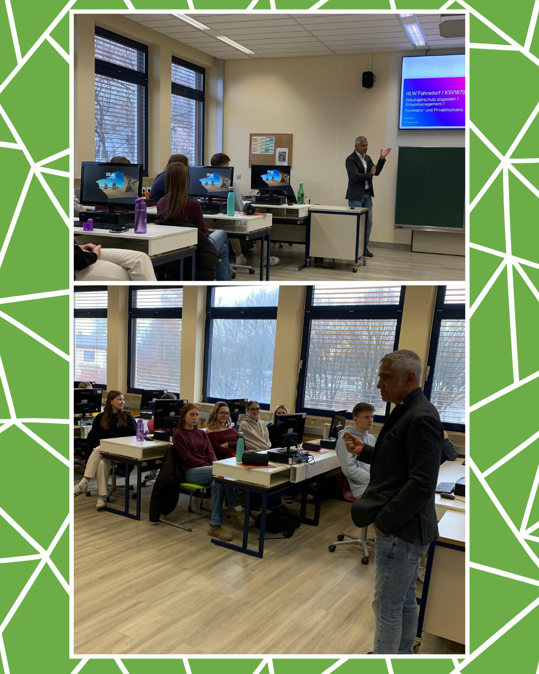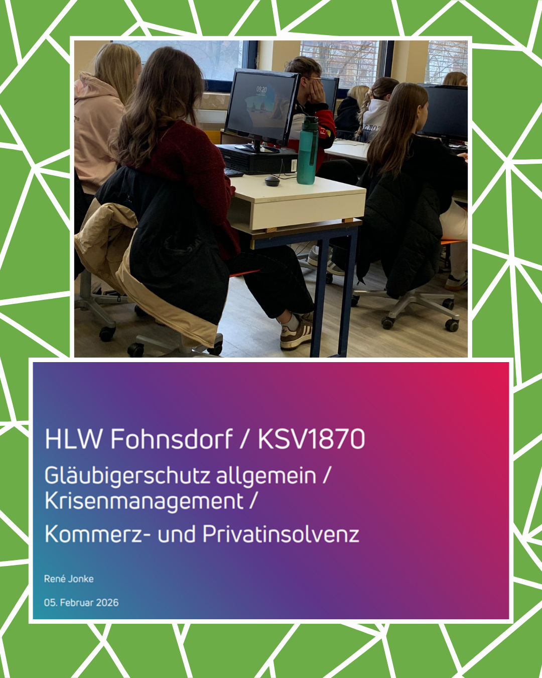Herr Rene Jonke vom KSV1870 besuchte die HLW und diskutierte mit den Schüler:innen des zweiten und dritten Jahrgangs über die Arbeit des KSV1870. Im Mittelpunkt standen Bonitätsbewertungen als Instrument zur Risikoabsicherung, etwa zur Erkennung von Risikokunden. Außerdem wurden der Gläubigerschutz, die Auswirkungen von Kundeninsolvenzen sowie Möglichkeiten der Vorbeugung und Schadensminimierung thematisiert. Abschließend erhielten die Schüler:innen Einblicke in die Insolvenzentwicklung und typische Insolvenzursachen, einschließlich der Unterscheidung zwischen Privat- und Unternehmensinsolvenz.