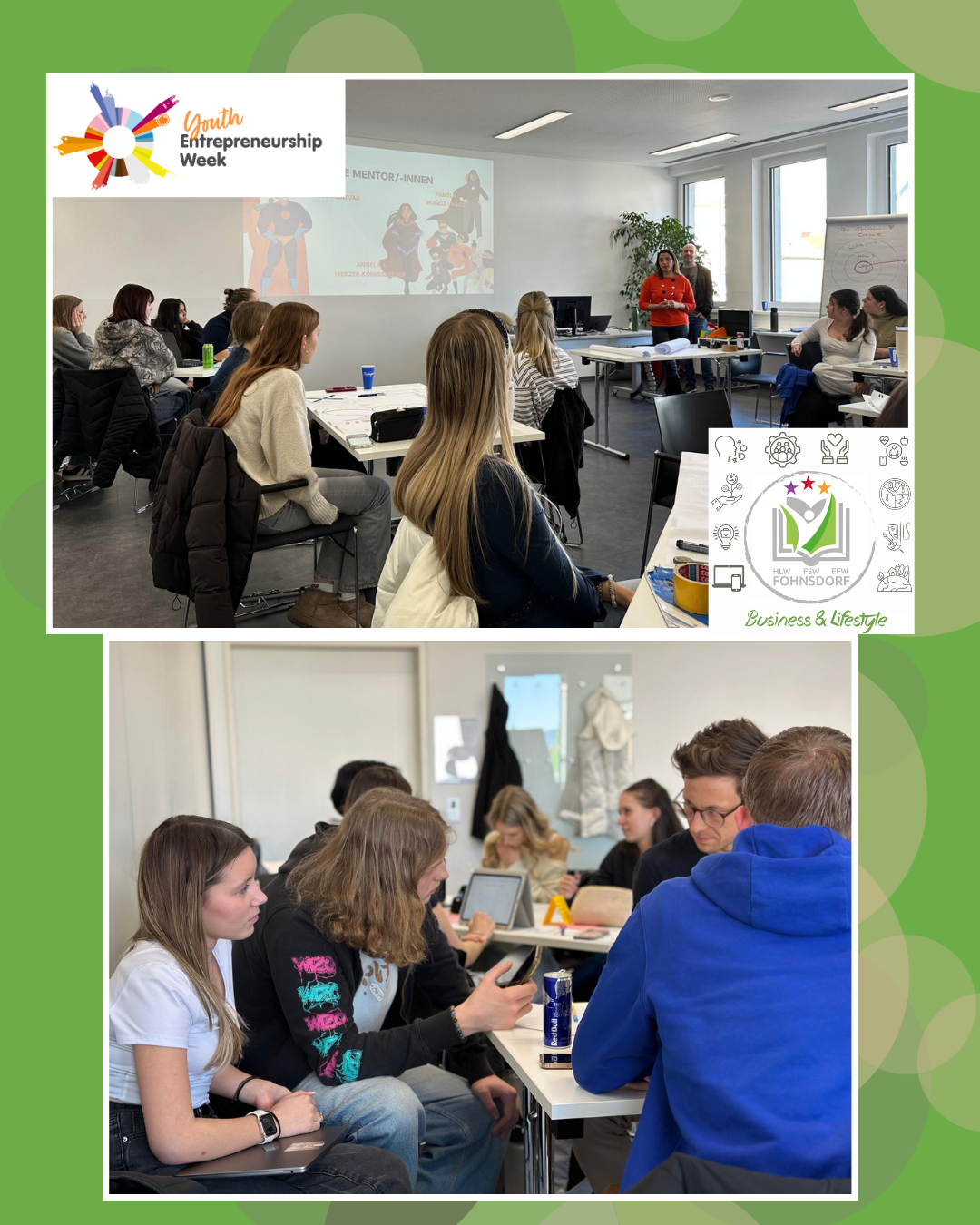 Die 3A der HLW nahm von 23. bis 26. Februar 2026 an der Youth Entrepreneurship Week in der Wirtschaftskammer Judenburg teil. 20 Schüler:innen entwickelten dabei kreative Geschäftsideen zu Nachhaltigkeit, Digitalisierung und Alltagslösungen und präsentierten sie am letzten Tag vor einer Jury.
