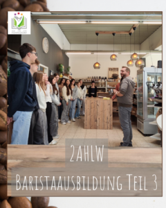 Die Schüler:innen der 2AHLW tauchten im Barista-Kurs bei Jamila Coffee in Spielberg in die Welt des Kaffees ein. Im ersten Teil lernten sie Spannendes über die Reise der Bohne – von Anbau und Ernte bis hin zu den verschiedenen