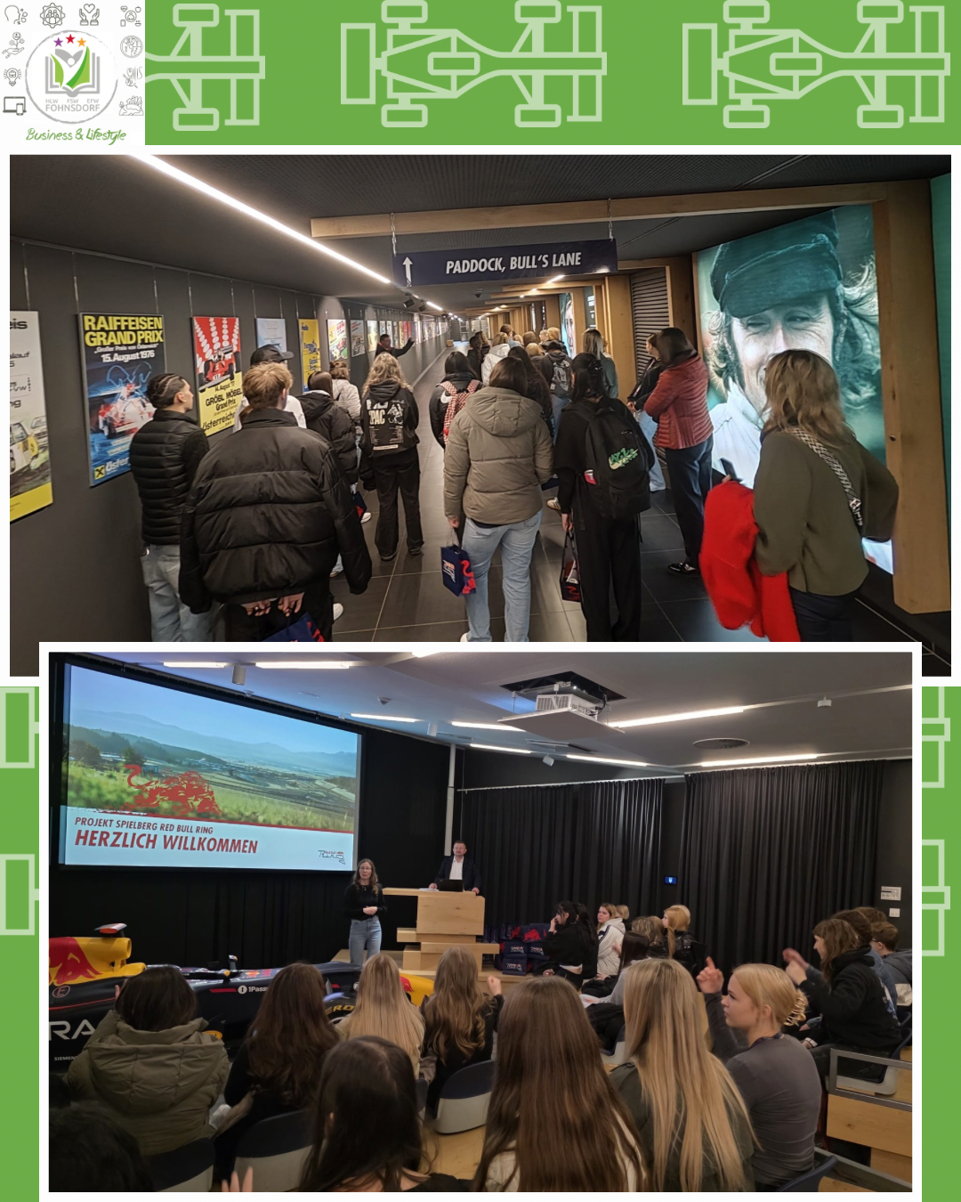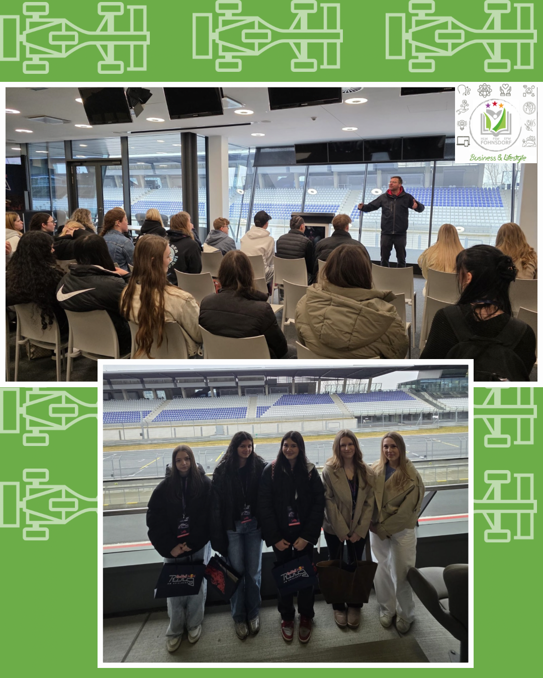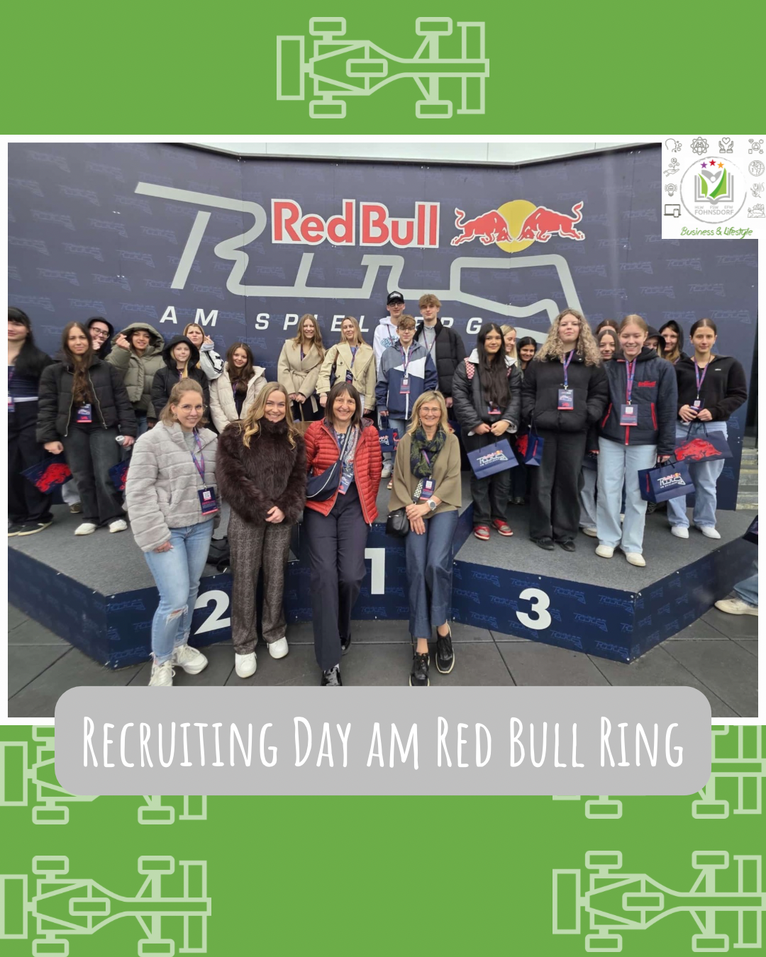 Heute hatten die 2. HLW und die 2. FSW die Gelegenheit, am Recruiting Day am Red Bull Ring teilzunehmen. Zu Beginn erhielten die Schüler*innen in einer informativen Präsentation einen Überblick über verschiedene Berufsmöglichkeiten im Bereich Motorsport und Eventmanagement und bekamen dabei spannende Einblicke in die Arbeitswelt rund um die Rennstrecke.