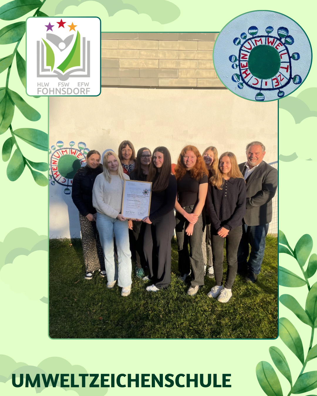 Das Interesse und der Wissensdurst unserer Schülerinnen an Umwelt-, Klima- und Artenschutz, sowie Gesundheit und Nachhaltigkeit sind ungebrochen und daher ein zentraler Bestandteil des Unterrichts an der HLW Fohnsdorf. Seit mehr als 10 Jahren ist die Schule stolze Trägerin des Österreichischen Umweltzeichens und erfüllt als einzige höhere Schule in der Region die strengen Kriterien dieser höchsten staatlichen Auszeichnung im Umweltbereich.